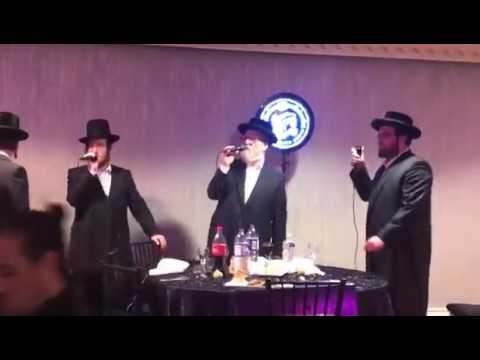 Michoel schnitzler singing at a bar mitzvah in Boro park. With the shira choir and moshe glick